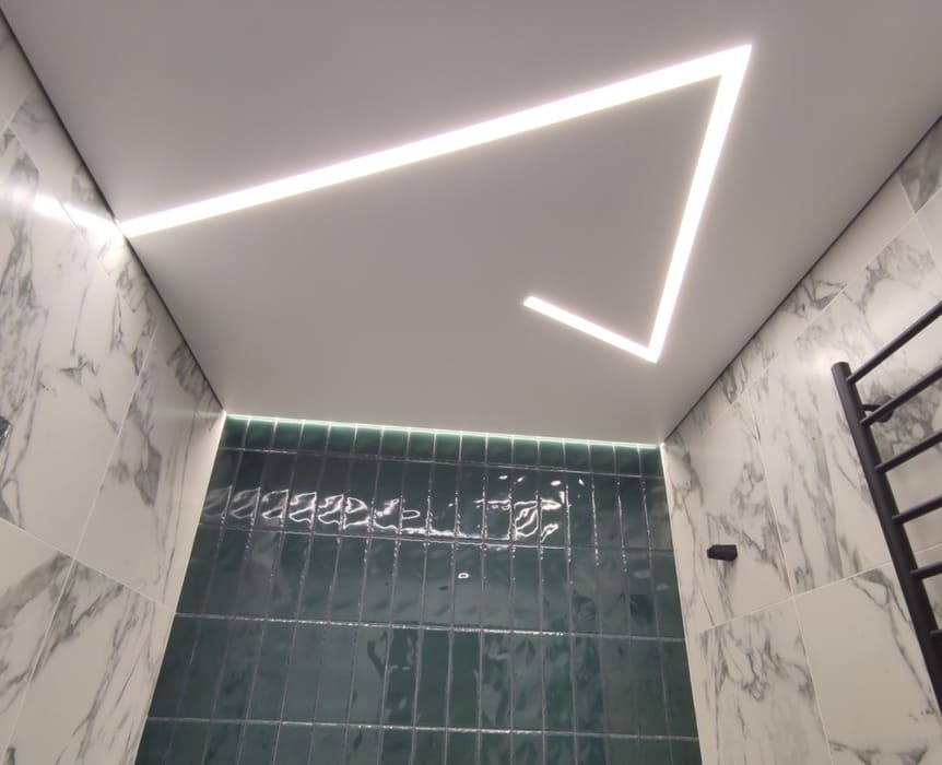 Использование линий позволяет зонировать помещение и маскировать шов на полотне. Возможность использования линий разных форм - прямые, замкнутые, ромбы, прямоугольники, квадраты;
