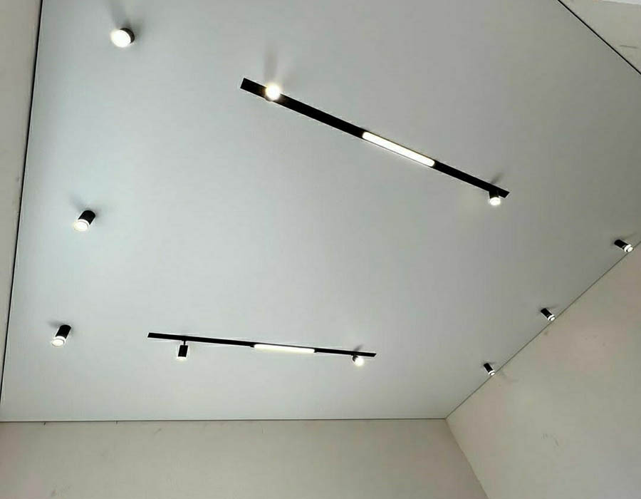 В итоге вы получаете красивые потолки. Производится окончательный расчет. Предоставляется гарантия 15 лет на полотно.