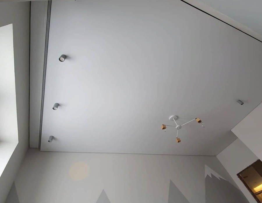 Матовые потолки изготавливаются шириной до 5 метров, что позволяет устанавливать полотно без шва в больших помещениях.